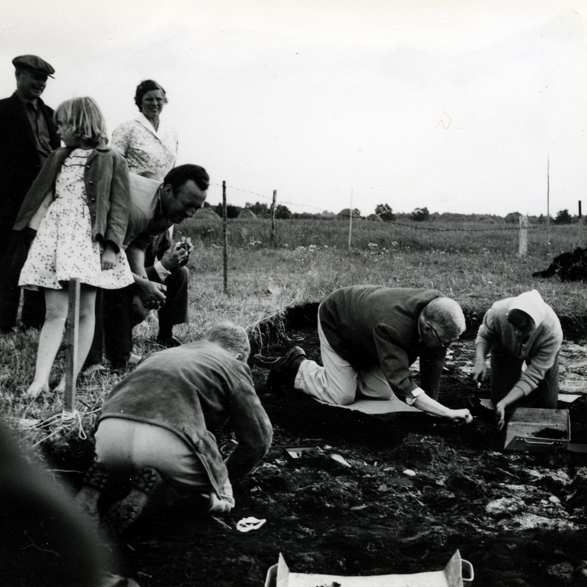 Foto från utgrävningen i Skedemosse. Kung Gustaf VI Adolf deltog med stor entusiasm.