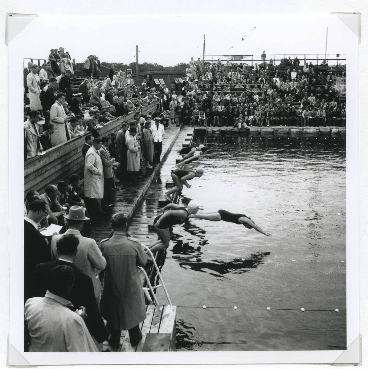 Startskottet har gått vid SM i simning, som 1946 hölls vid Långviksbadet i Kalmar.