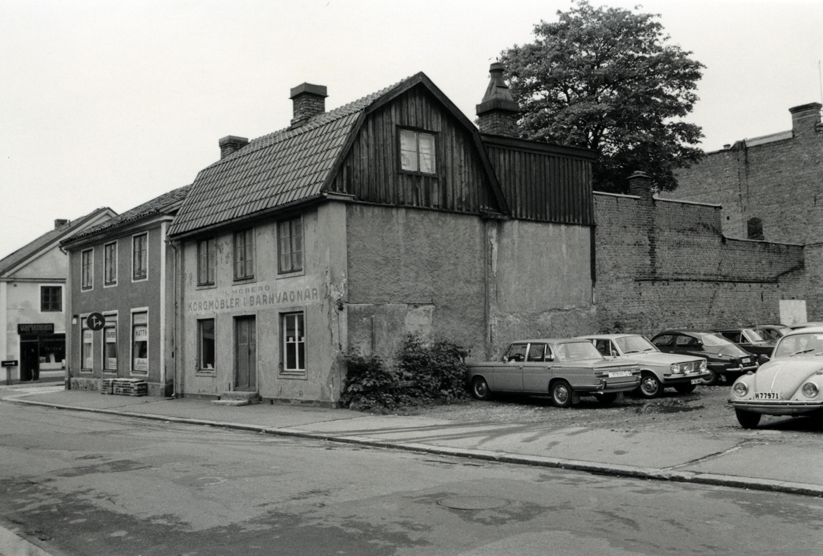 Byggnaden från Fiskaregatan. Här syns tydligt husets olika byggnadsfaser. Till det ursprungliga gathuset har tillbyggts först en köksdel (med huv på skorstenen) därefter två bostadsrum med vind över, sist ytterligare ett rum.