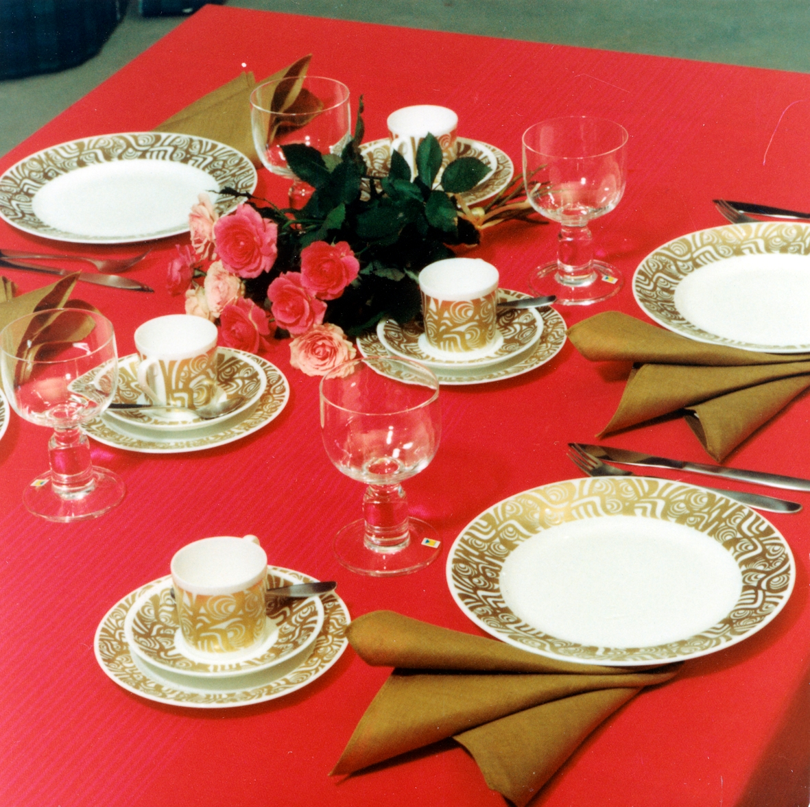 Dukning med mat- och kaffeservis från Domus, på varuhuset i Kalmar.