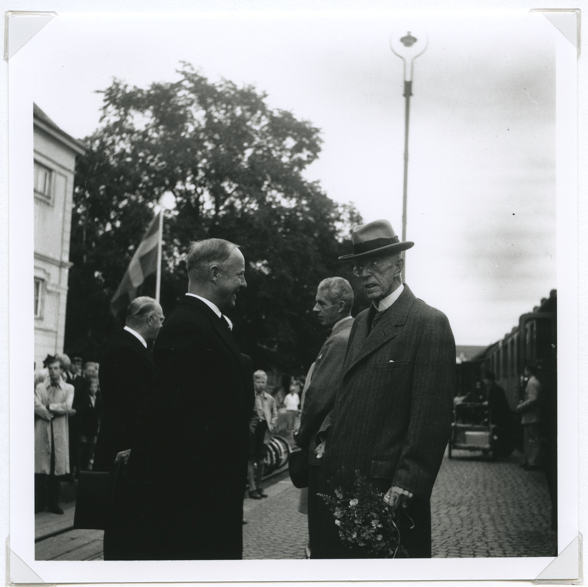Konung Gustav V i samspråk med borgmästare Yngve Malmquist.