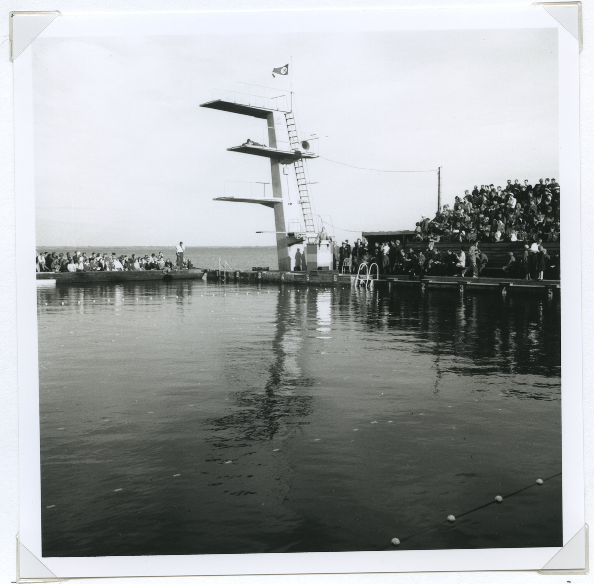 Ögonblicksbild från SM i simning som hölls vid Långgviksbadet i Kalmar 1946.