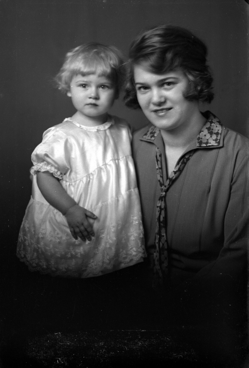 Ateljébild på en flicka och en kvinna. Enligt Walter Olsons journal är bilden beställd av fru O Lundell.