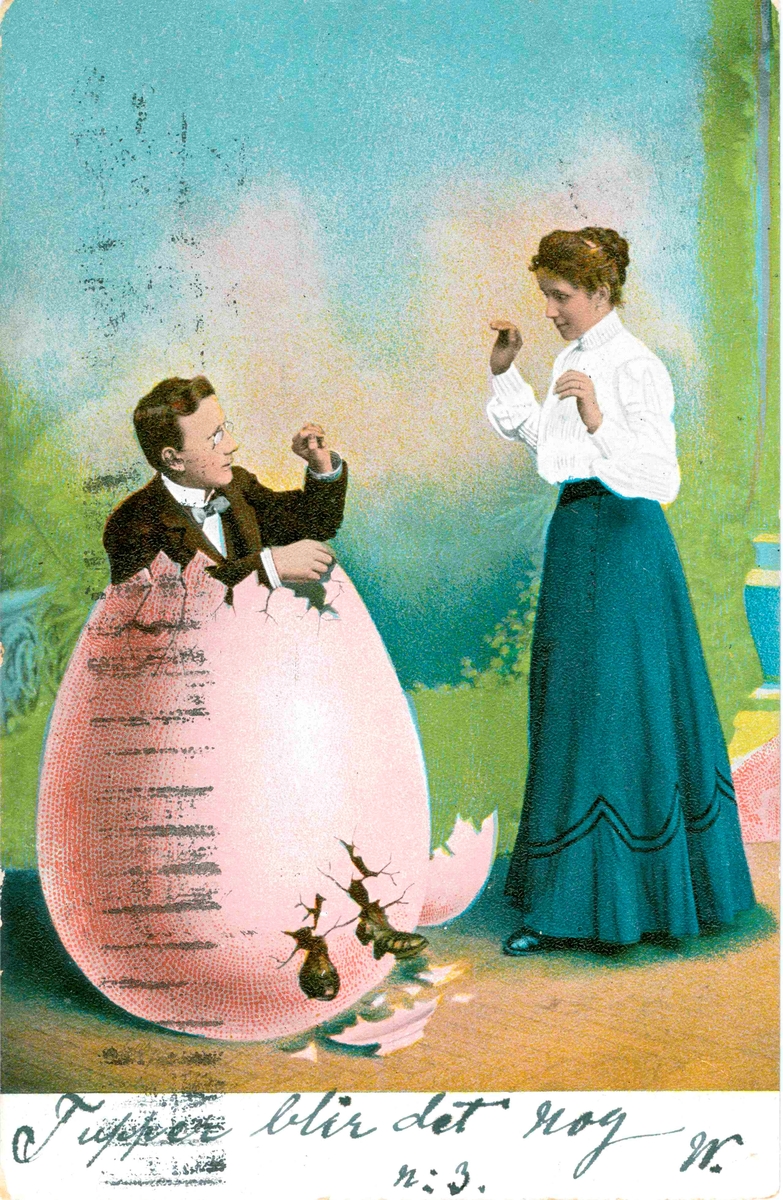 Vykort skickat till Kristina Andersson född 1865 i Böda, syster till N J Andersson, när hon bodde i USA. Kortet är skrivet av Edvard Nilsson i Böda. Nedtill på kortet står skrivet: "Tuppen blir det nog n 3 W."