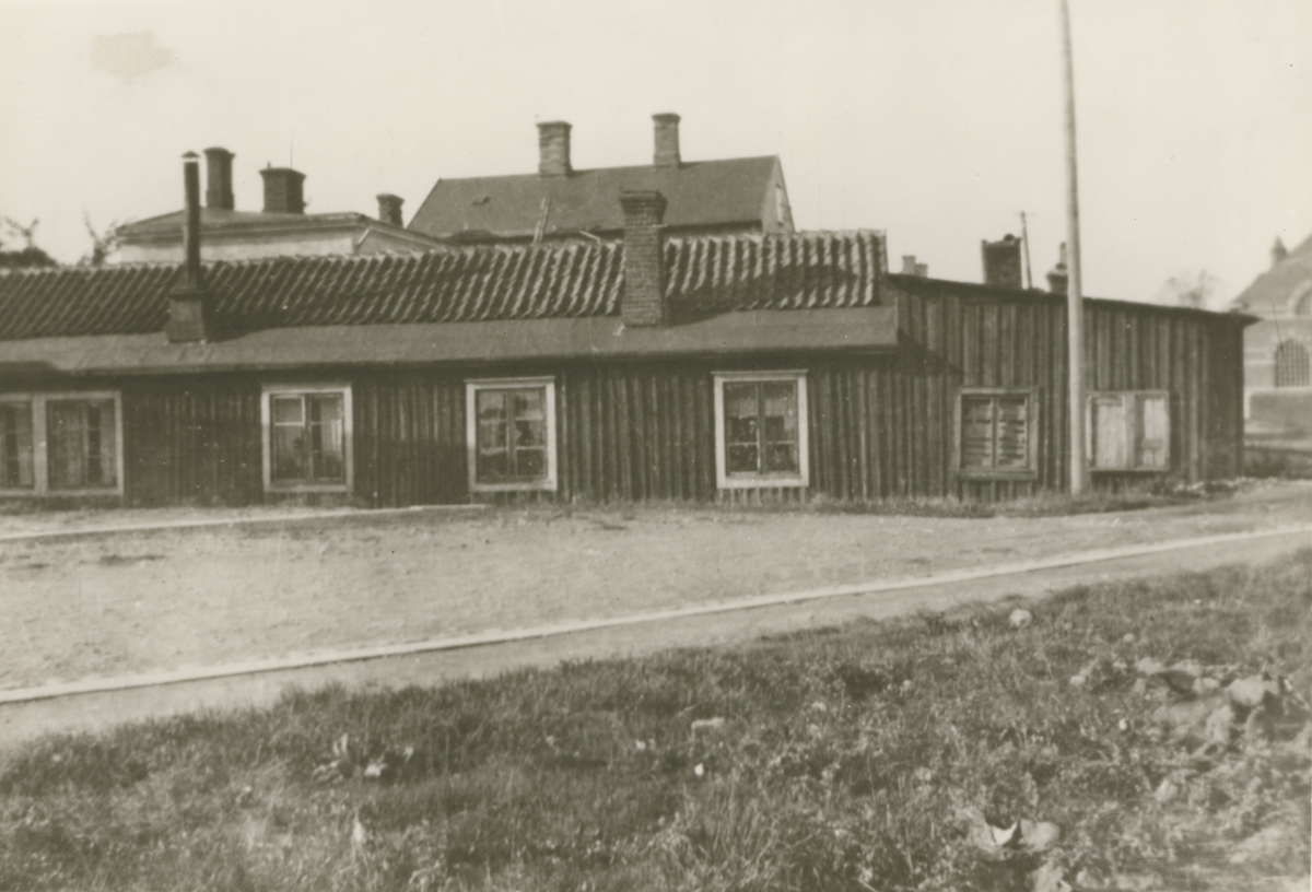 Små bostadshus på Strandgatan på Malmen. I bakgrunden syns elverket.