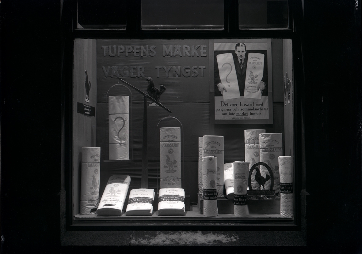 Skyltfönster på Eoska huset 1936. Beställare Ludvig Johansson eftr. Eoska huset. Ur Walter Olsons negativsamling.