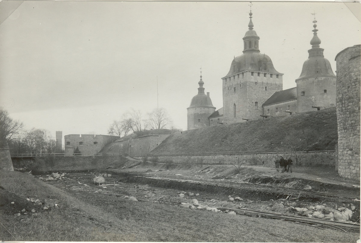 Vallgraven torrlagd under den stora utgrävningen 1932-34.