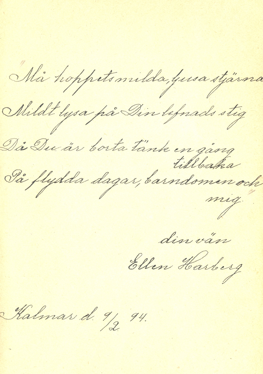 Sida ur Lilli Sahlbergs minnesalbum.