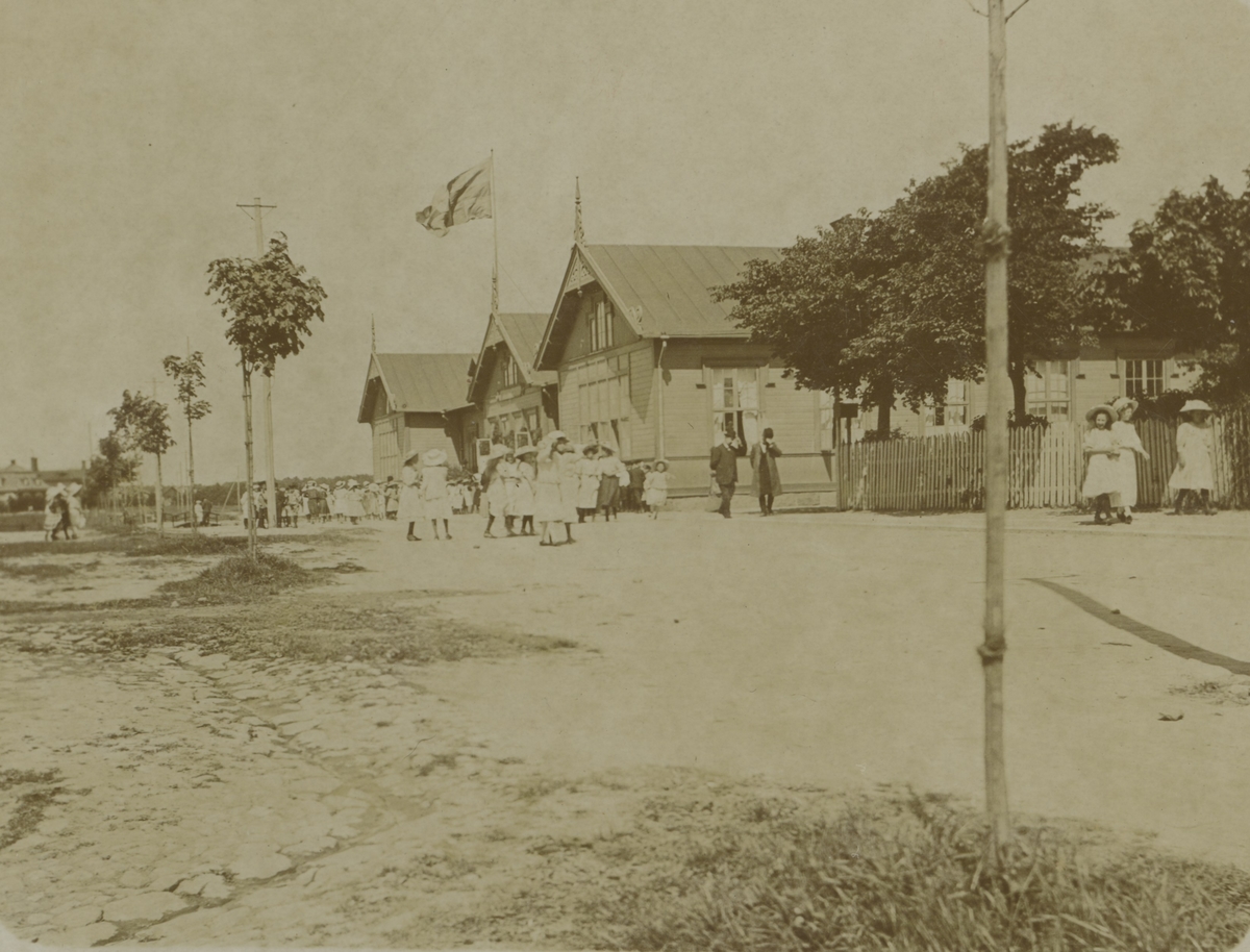Den gamla skolan på Ängö. Idag ligger lågprishotellet Svanen på platsen.