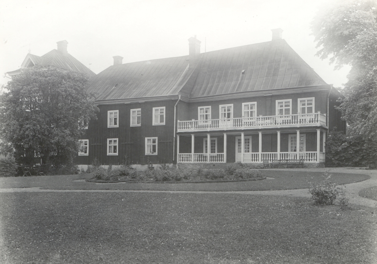Motiv från Tyllinge säteri. Mangårdsbyggnaden sedd från trädgården.