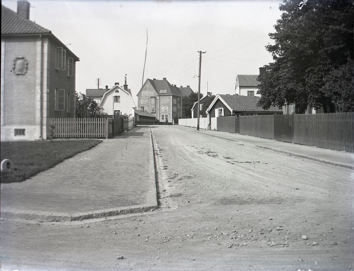 Det vita huset med gaveln mot kameran är Pihlska gården. Gatan utanför kallades från början Lilla Dammgatan och utgick från "Gullbrandssonska lyckan" och slutade vid Södra Vägen. Numera heter den Kungsgatan. I bakgrunden syns Vasaskolan.