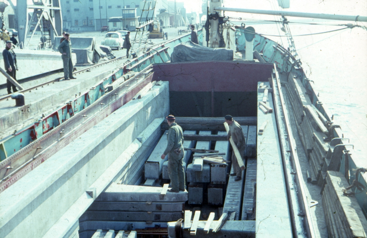 Balkar som ska levereras med fartyget "Lisa" till LM Ericssons nya fabrik, omkring 1968.