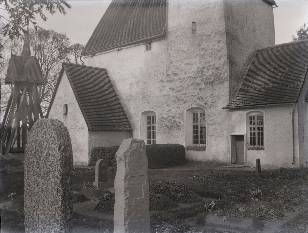 Hossmo kyrka, under gravstenen till vänster vilar landshövding Nerman död 1852. Porten i koret sattes igen 1952.
