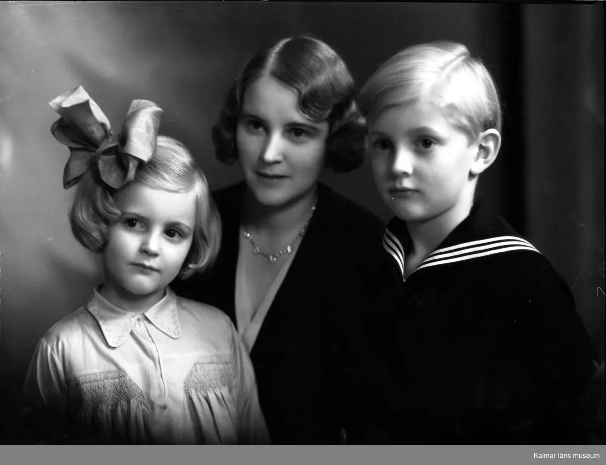 Ateljébild på en flicka i hårband, kvinna och en pojke. Enligt Walter Olsons journal är bilden beställd av kapten S Hjort.