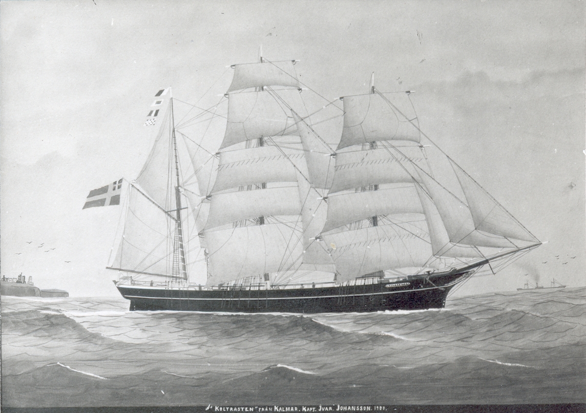 En målning av barkskeppet "Koltrasten".