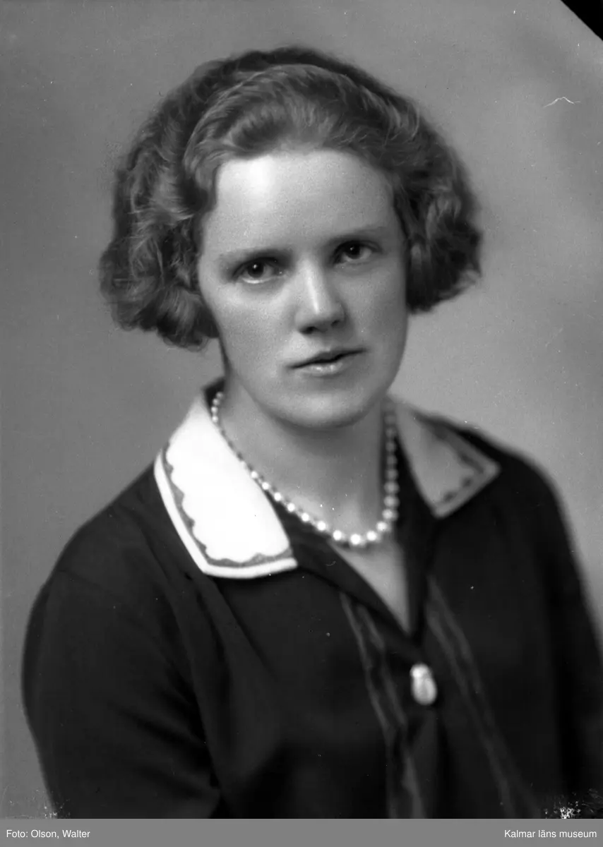 Ateljébild på en kvinna med halsband och brosch. Beställare till bilden: Karin Johansson ifrån Näsby i Ottenby.