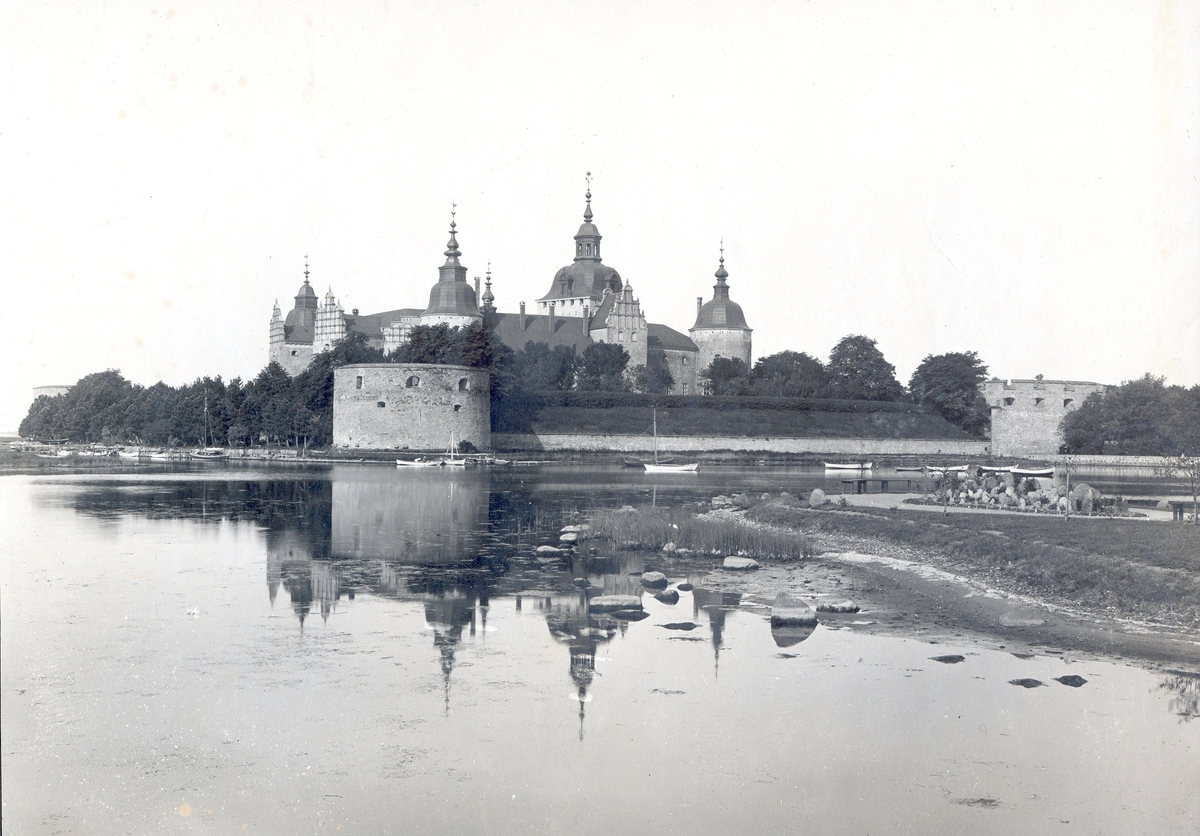 Kalmar slott med Södra tornet, Fångetornet, Kuretornet och Kungsmakstornet samt Norra och Östra postejen.