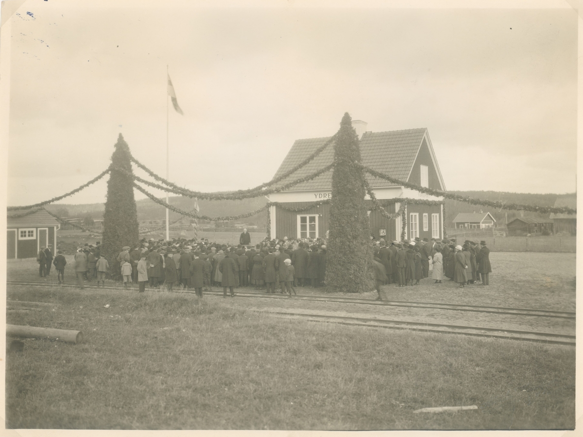 Titel: Från den vid Ydrefors station under år 1924 av Landshövding J Falk förrättade invigningen av Vimmerby - Ydre Järnväg.