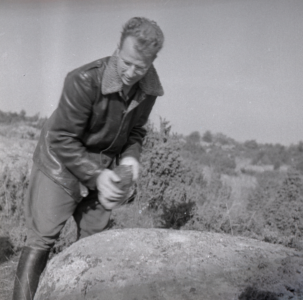 En demonstration i samband med en arkeologisk undersökning vid Nybyåsen 1/10 1958.