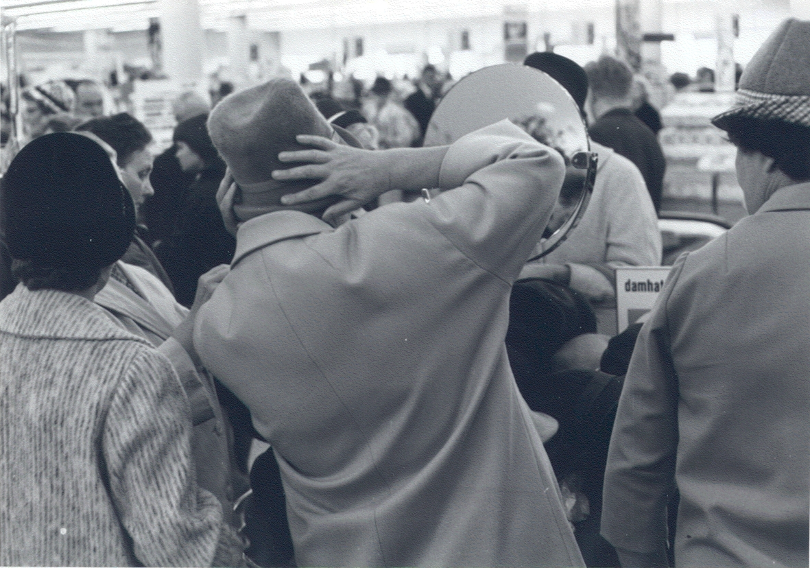 Försäljning av hattar vid invigningen av Domusvaruhuset den 10/9 1964.