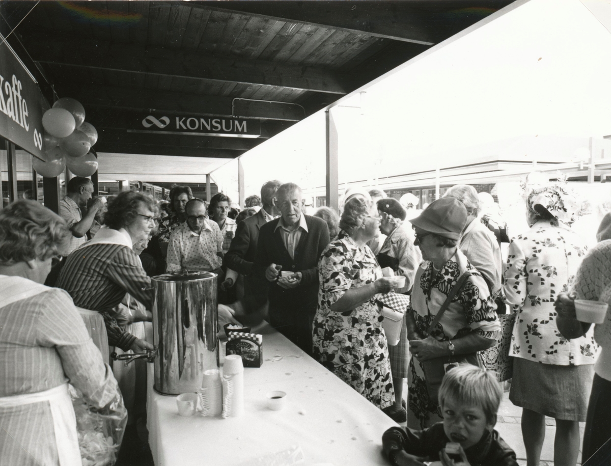 Demonstration av Cirkelkaffe utanför Konsumbutiken i Berga Centrum.