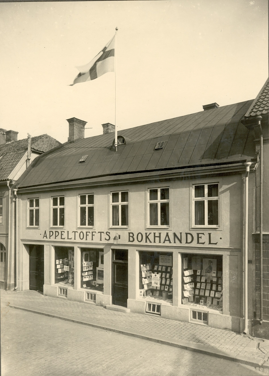 Appeltoffts bokhandel på Storgatan 12. Fram till 1970-talet drevs i samma regi en kontors- och pappershandel vid Stortorget.