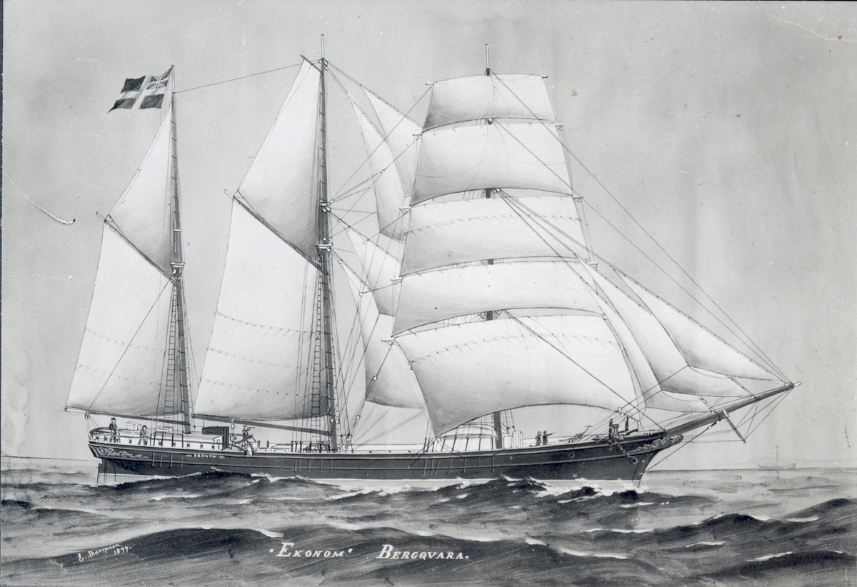En så kallad kaptenstavla, föreställande skonaren Ekonom, från Bergkvara.