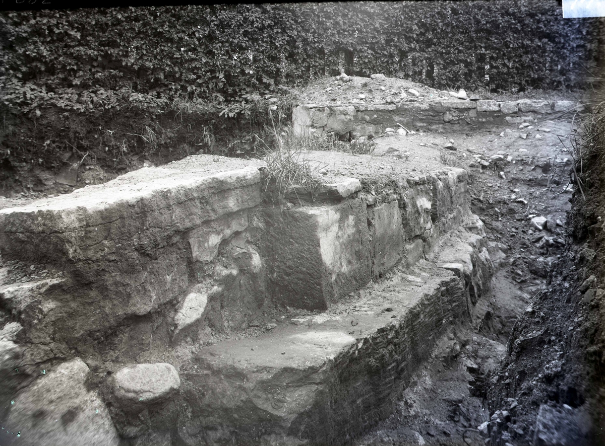Album sammanställt av Manne Hofrén. Bilderna visar utgrävningarna i Kalmar gamla stad, Gamla Stadskyrkan, 1923-1924.