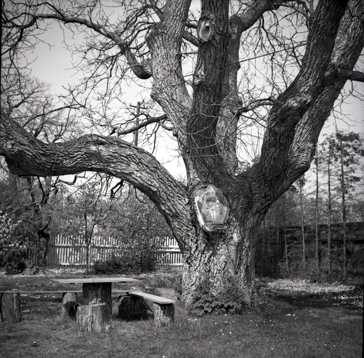 Trädgård med sittmöbler i kvarteret Björken.