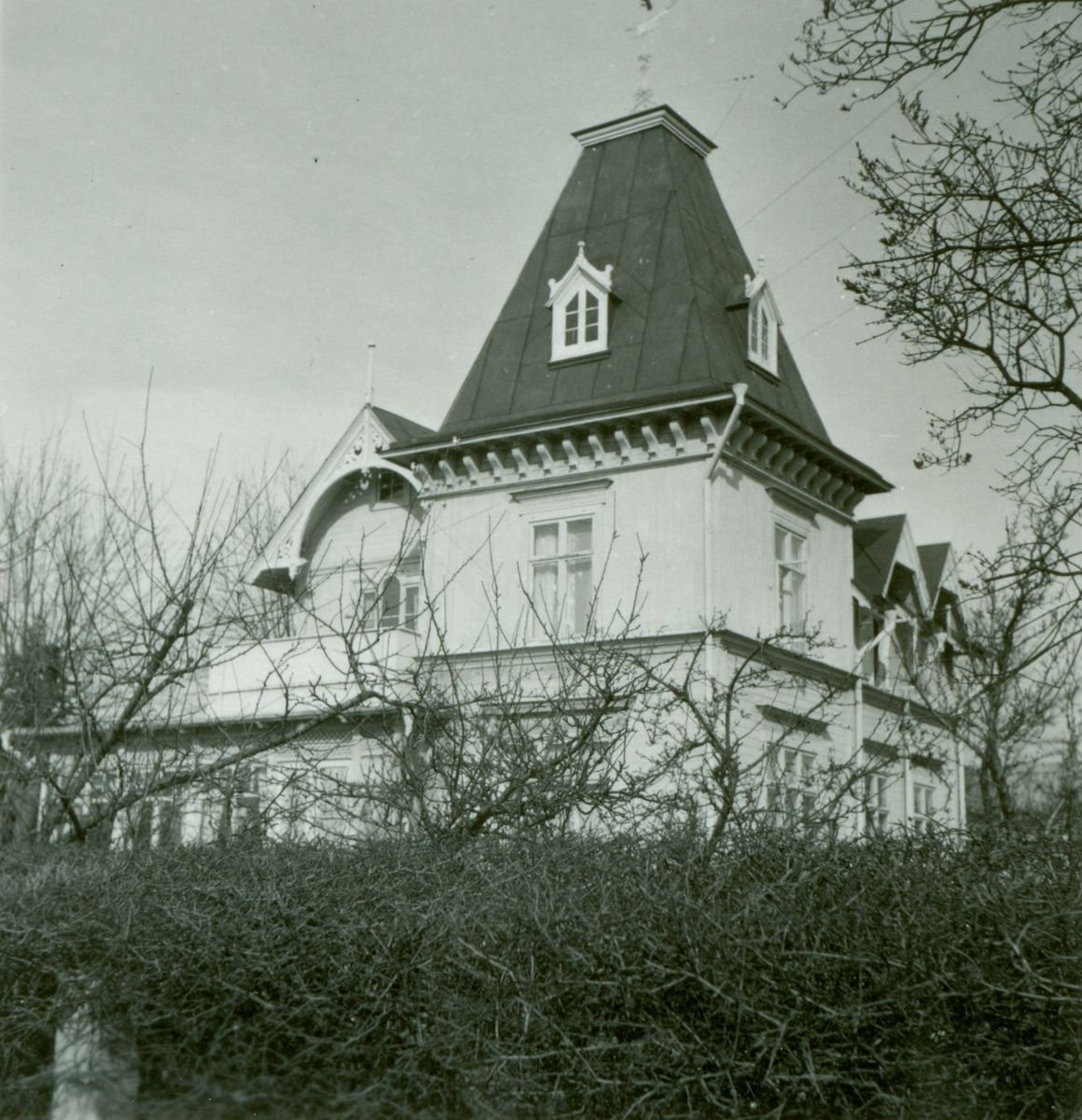 Ett bostadshus med torntak med gesims på Kvarngatan i Borgholm.