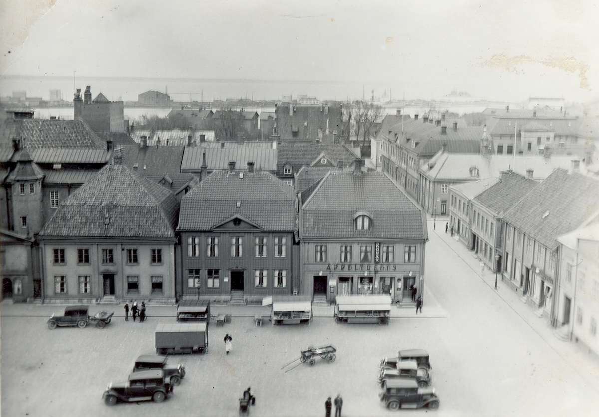 Stortorget i Kalmar med Appeltoffts bokhandel i hörnan.
