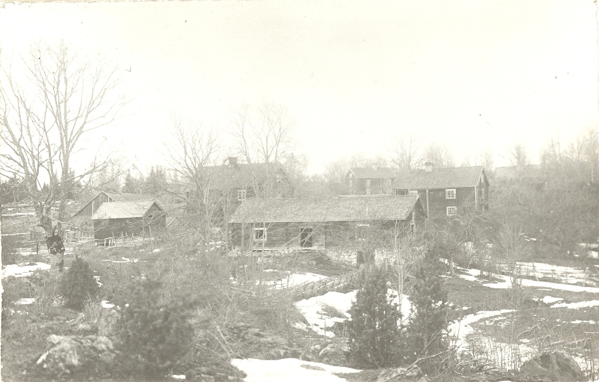 Omkring 1914 ,strax före rivningen. Från söder med gamla "Karl-Israelsgården" i förgrunden. Foto:Osmin Jennes