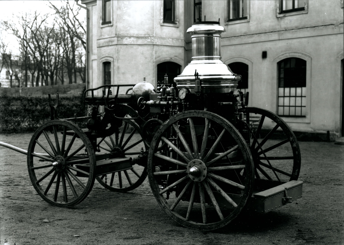Ångdriven brandspruta som drogs av två hästar. Finns att bese på Brandstationen. 1885 års modell. Använd sista gången vid Ångkvarnsbranden 1935. Blev museiföremål 1944. Var så välskött och fin att Stockholms stad lånade den till en utställning.