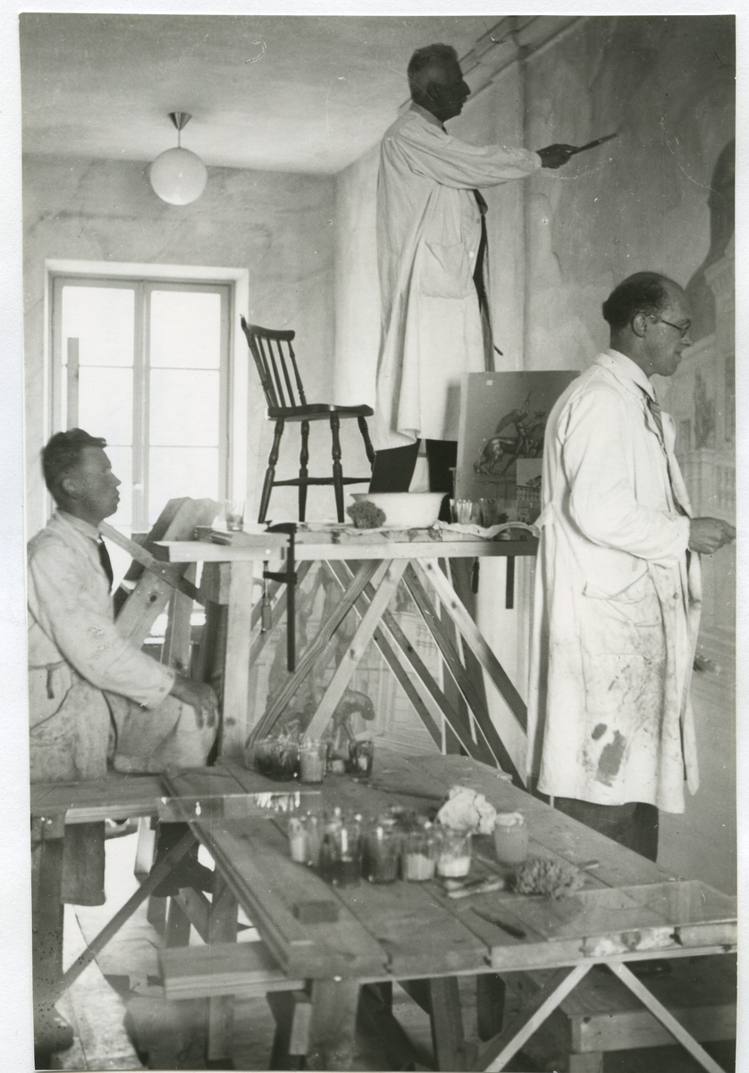 Prins Eugen dekorerar i Kalmar Nya Läroverk när det byggdes 1932-34.