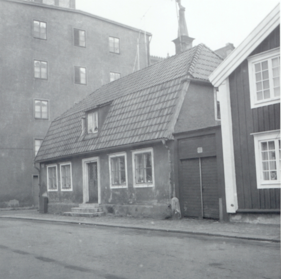 Bostadshus i kvarteret Krögaren. Putsen på huset till vänster är senare borttagen varför det står som korsvirkeshus.