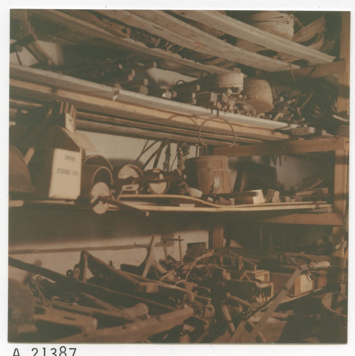 Ett magasin med jordbruksredskap.
