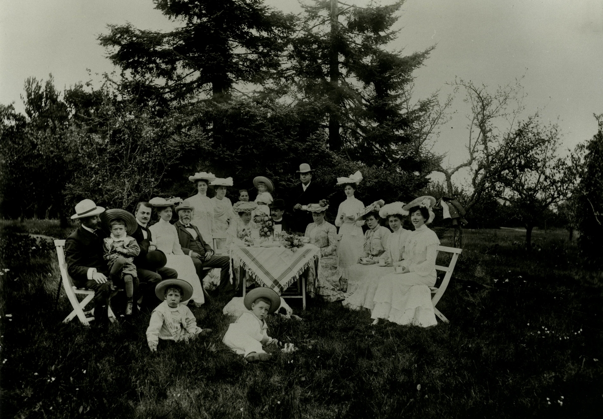 Ragnar L. Jeansson (son till grosshandlare Johan Julius & Emma Jeansson) och hans hustru Tyra Jeansson i mitten på bilden. John och Malin Bruun, farfar Helge och (Gagg) som småpojkar. Vivi Bruuns lysningskalas.