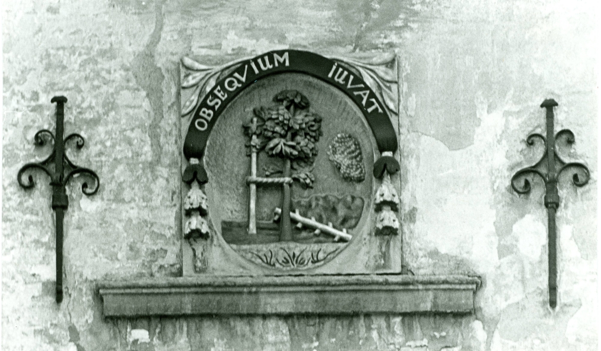 Stenrelief på rådhusets huvudfasad, huggen av Jacob Schultz och uppsatt 1688.