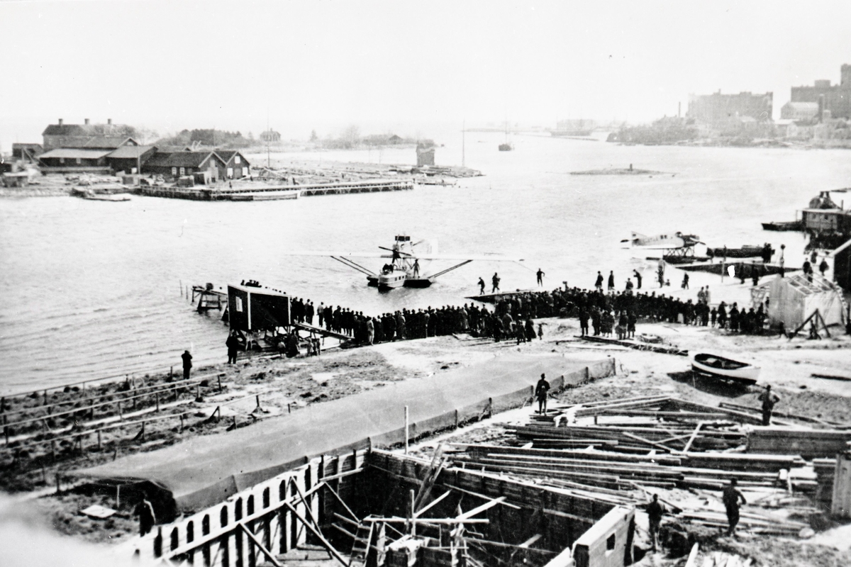 Flyghamnen på Ängö. Det sägs att Hermann Göring flög det här planet.