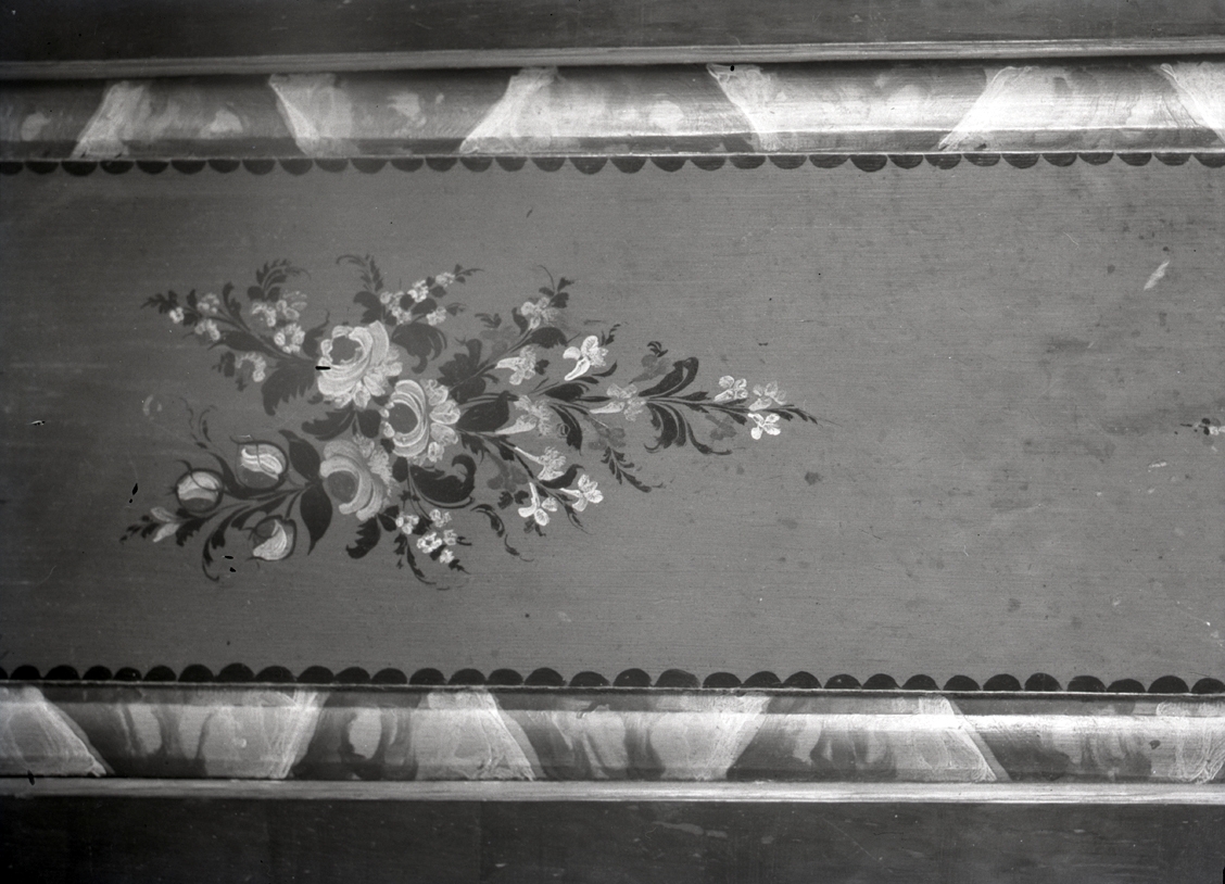 Detalj på målat skåp i köket, daterat 1818.