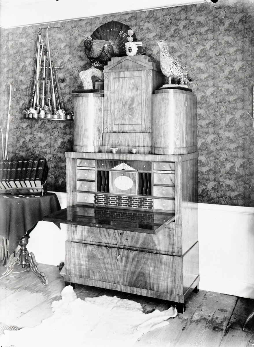 Skrivskåp av mahogny i barons skrivrum på Slottet.