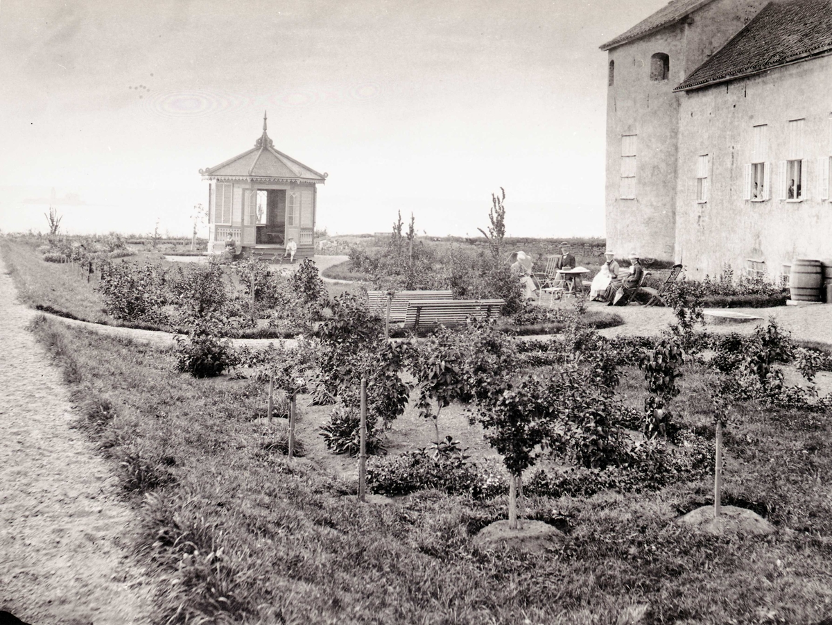 Trädgården på slottsvallen med landshövding Edelstam och familj.