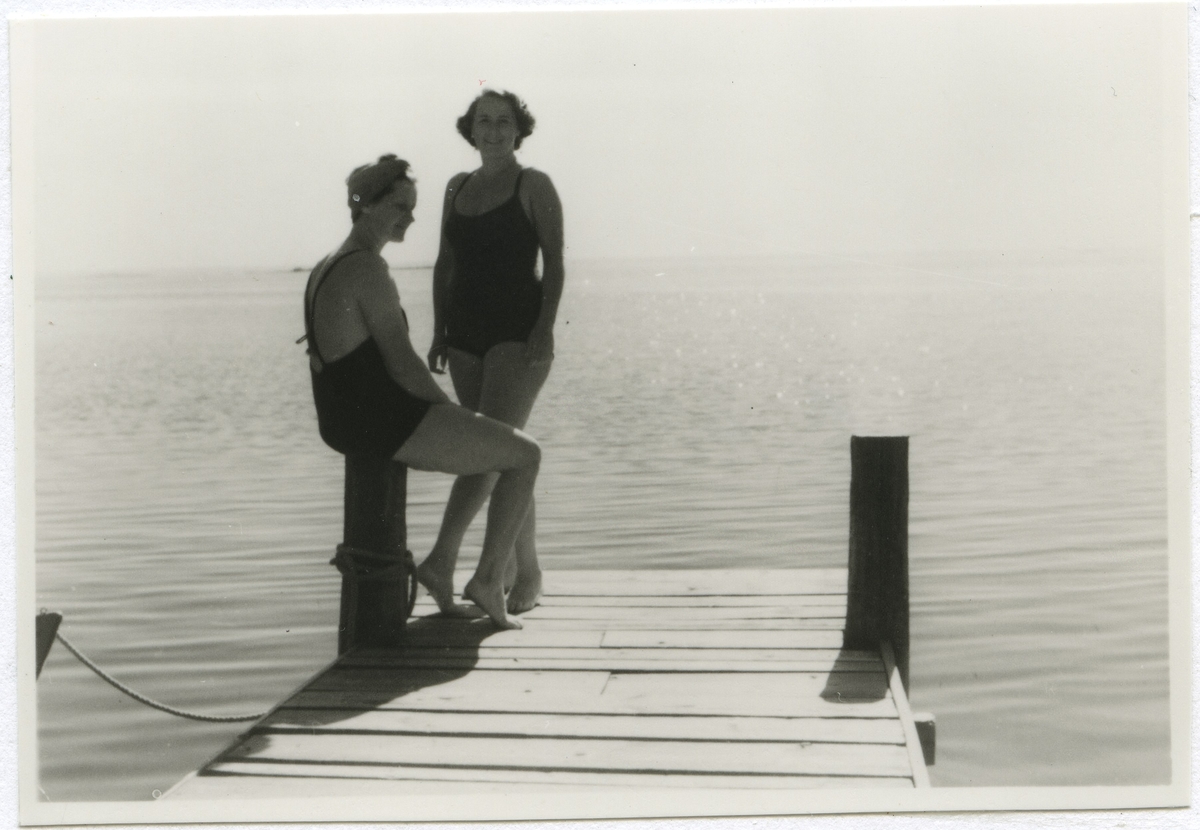 Linnea och Greta Magnusson på Dunöbryggan 1935.