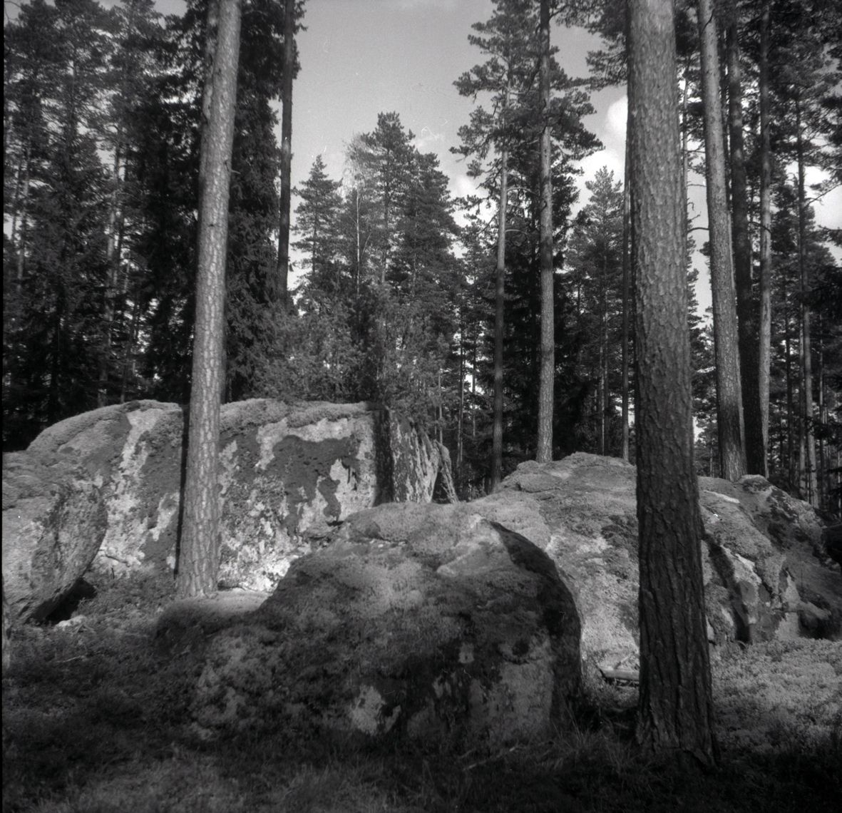 Nationalparken i Norra Kvill, tallskog och flyttblock.