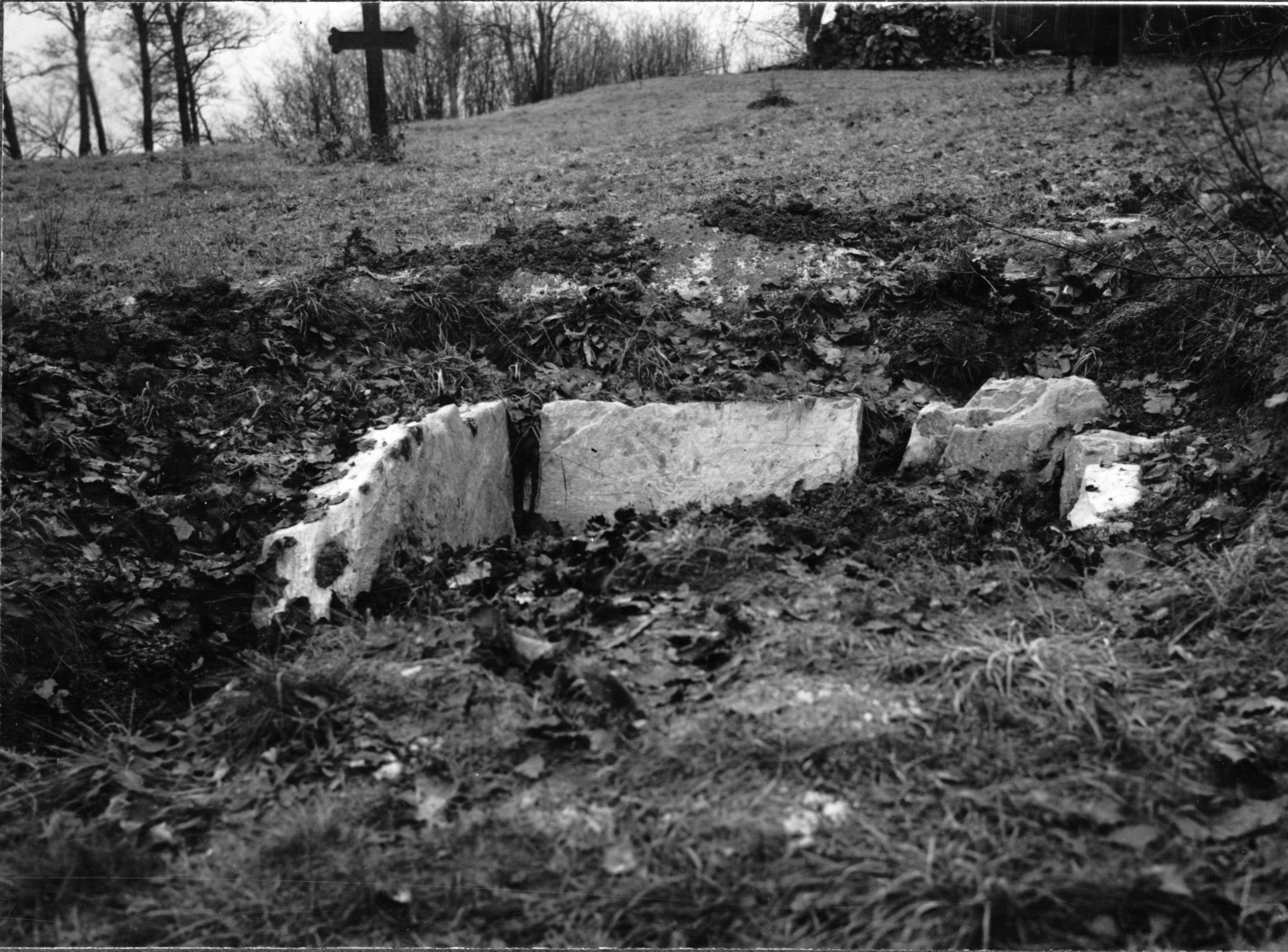 På kyrkogården påträffad, av stenhällar byggd grav.