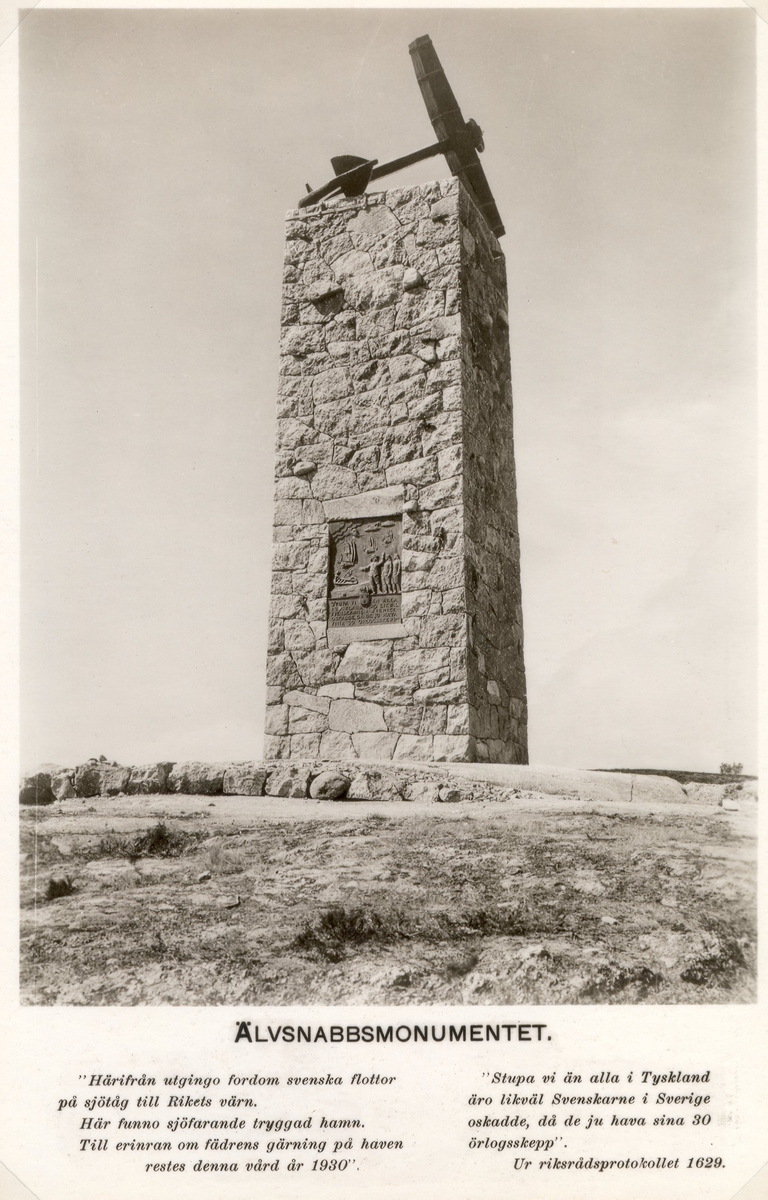 Älvsnabbsmonumentet. Vid Mysingen vid strandkanten står Älvsnabbsmonumentet. Det restes 1930 till minne av att det var 300 år sedan Gustav II Adolf seglade till det som blev det 30-åriga kriget. Denna delen av skärgården har varit militärt område ända sedan Gustav Vasas tid, då han tog hit Sveriges första flotta. Den skyddade naturhamnen innanför Älvsnabben var känd redan på 1200-talet och användes som ankringsplats för fartyg. Det är den äldsta och var den viktigaste samlingsplatsen för svenska flottan under segelflottornas tid. Invigningen var av nationell betydelse och många prominenta personer deltog. Invigningen skedde nästan på dagen 300 år efter att Gustav II Adolf hade seglat härifrån mot Tyskland, med 14000 soldater ombord på 23 krigsfartyg.