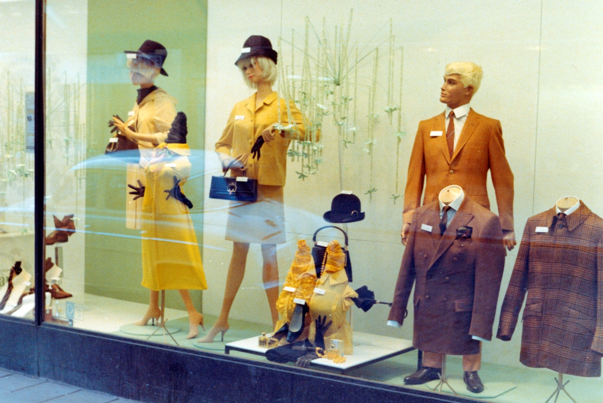 Vårens mode i Domus skyltfönster, i Kalmar, 1968.