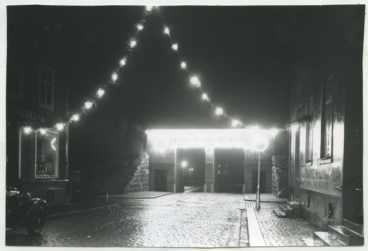 Julbelysning på Kaggensgatan i Kalmar, 1931.