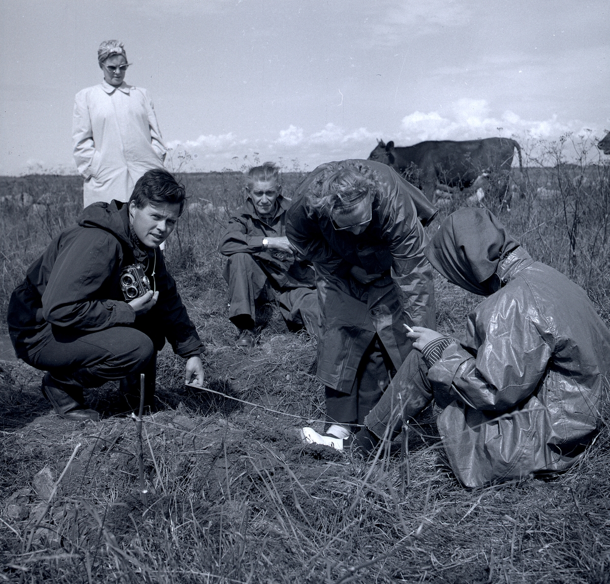 Antikvarie Ulf Erik Hagberg och dr. Ragnhild Boström gör en arkeologisk undersökning vid Kåreholm. Kåreholm är en ö intill Kårehamn.