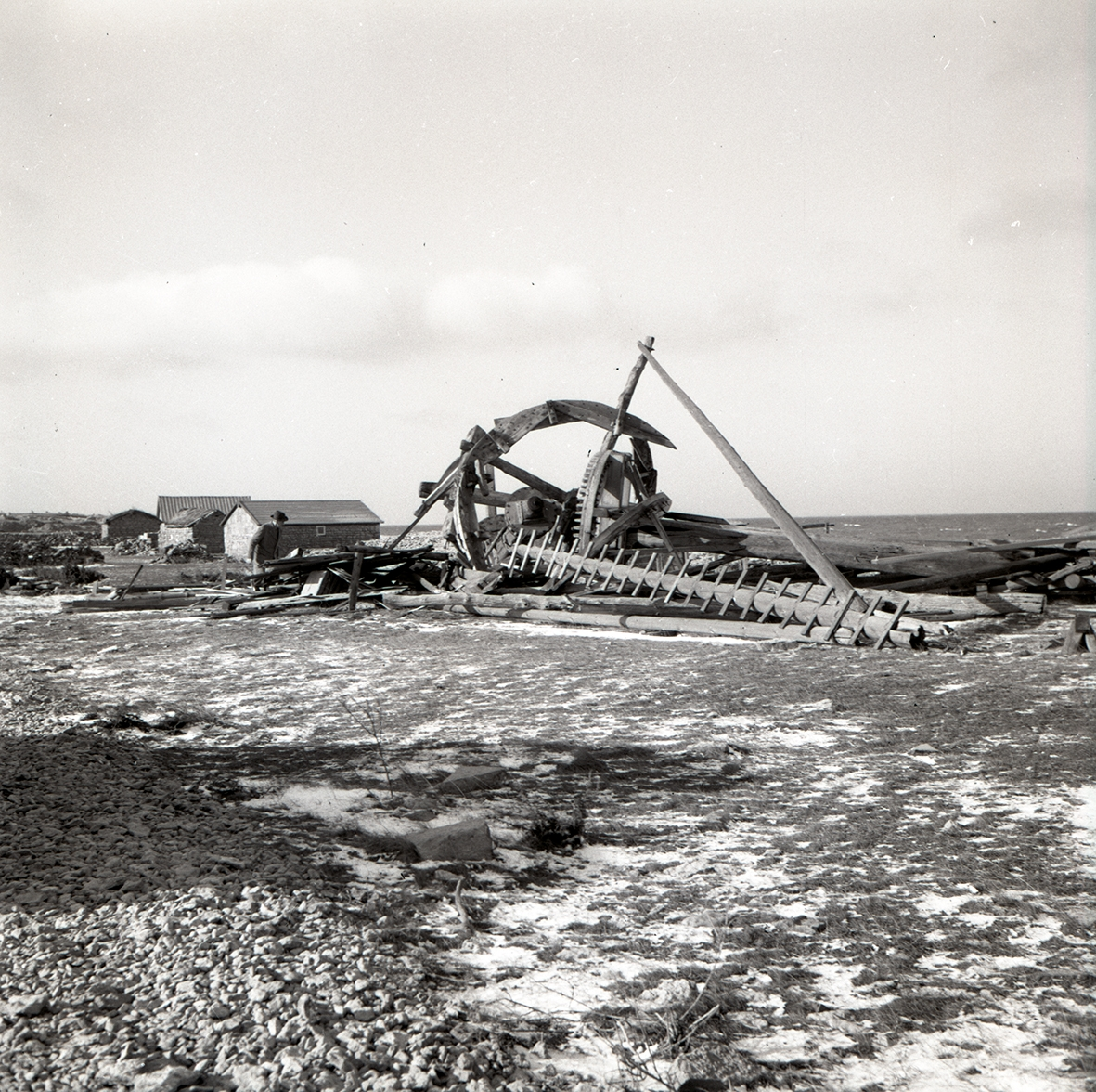 Skurkvarn vid Hjorthamn omkullblåst den 21/2 1962.